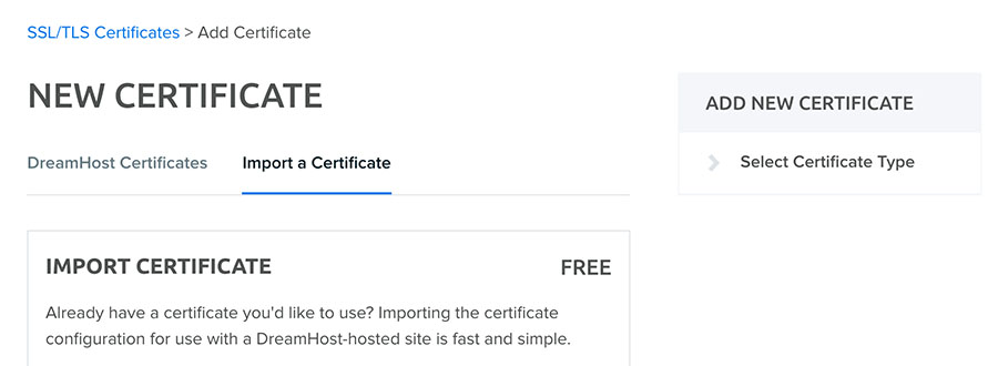 We’ve already shown you how DreamHost makes it easy to purchase and activate an SSL/TLS certificate from your control panel. You can use a similar process to add a third-party certificate.