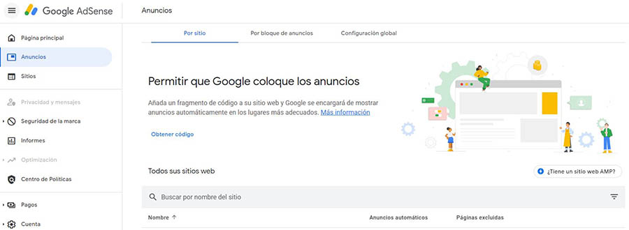 Una vez que tu cuenta es aprobada, inicia sesión en Google AdSense para obtener el código de tu anuncio. Lo necesitarás para mostrar los anuncios en tu sitio.