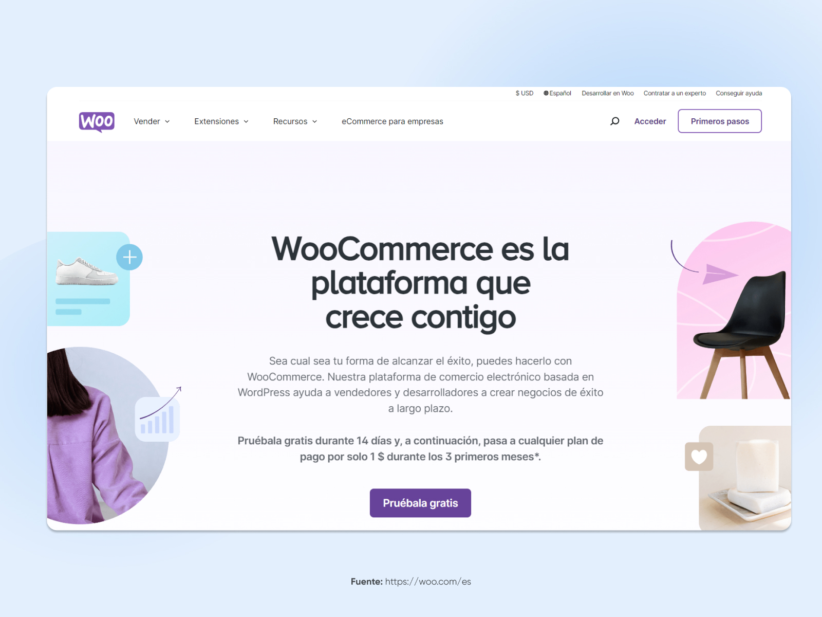 Comenzar con WooCommerce es un poco más complicado. Para empezar, necesitas crear un sitio de WordPress e instalar y configurar la plataforma WooCommerce. Además, aunque WooCommerce viene con un impresionante conjunto de características, deberás encontrar e instalar manualmente los plugins o extensiones adecuadas para agregar funcionalidades adicionales. Sin embargo, esos plugins y extensiones también te brindan acceso a toda la flexibilidad, escalabilidad, seguridad, SEO y opciones de soporte que puedas necesitar.