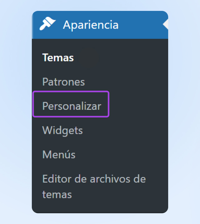 En tu panel de WordPress, navega a Apariencia > Personalizar.