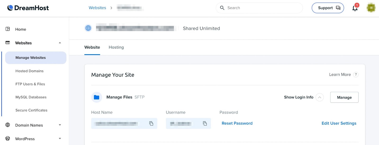 Ваш хост должен предоставить учетные данные, чтобы вы могли использовать клиент SFTP, такой как FileZilla. Эта информация должна быть легко доступна, чтобы вы могли получить к ней доступ в любое время: