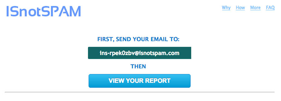 Por último, es inteligente usar un servicio como IsNotSpam.com para probar tu correo por posibles acciones que generen alertas de spam.