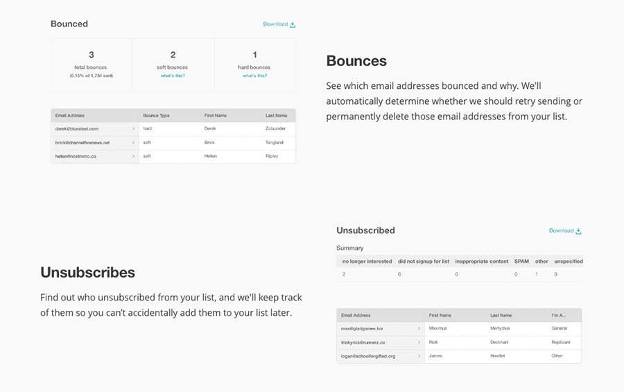 Es importante mantenerte conectado con tus suscriptores y mantener tu lista de correo tan actualizada como sea posible, ya que las direcciones de correo normalmente cambian. ¡Es cierto! Ese profesional joven no quiere usar la dirección “starwarslover6785@aol.com” para siempre. Una lista vieja puede llevarte a muchos hard bounces o rebotes permanentes de correo (mensajes rechazados permanentemente por razones como direcciones inoperables o inválidas) e incrementar tu puntuación de spam.