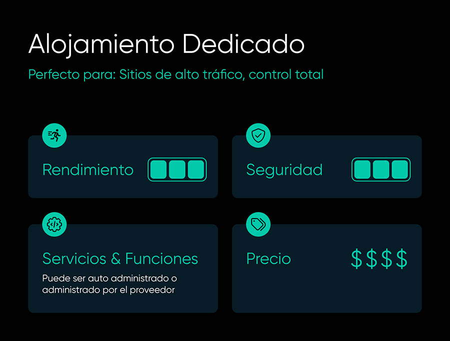 El alojamiento dedicado es ideal para ti, si tu sitio web requiere lo mejor para tener un buen rendimiento. Y, si tienes el presupuesto correcto.