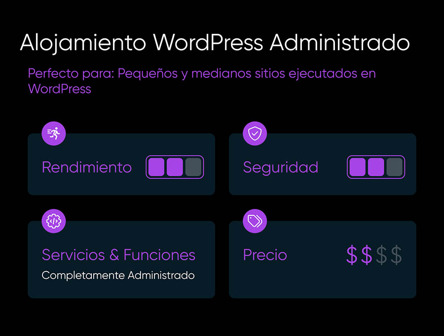 El alojamiento administrado de WordPress es diferente a otras opciones aquí mencionadas. Más que un tipo de plan, es un tipo de servicio.