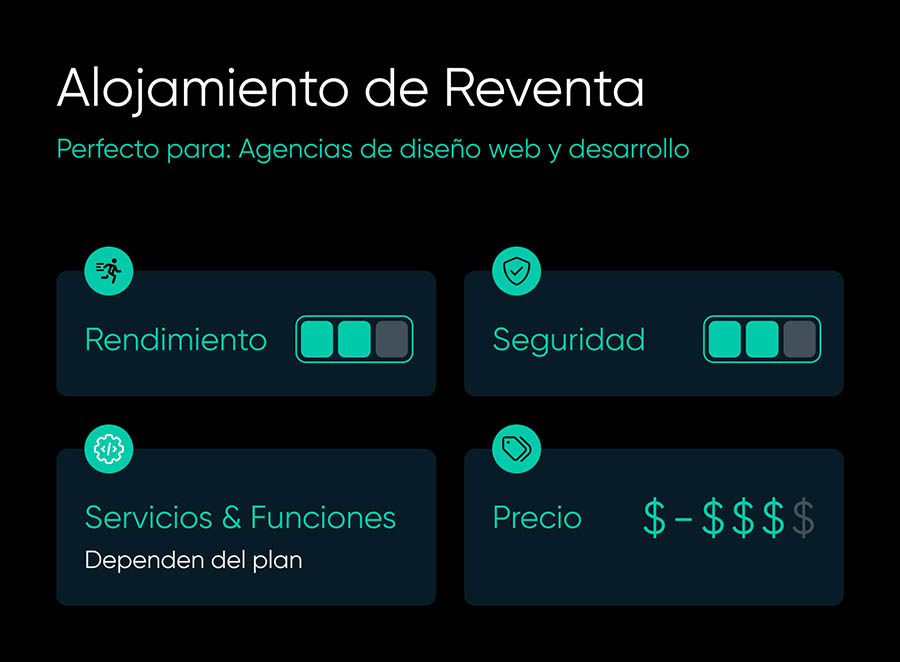 [glossary_term_es title=”Reventa de Hosting” text=”La reventa de hosting es cuando un desarrollador web u otro individuo paga por servicios de hosting de un proveedor y los revende a terceros. El usuario actúa como un intermediario entre la compañía de hosting y sus clientes y frecuentemente ofrece servicios de soporte técnico y de facturación.”]